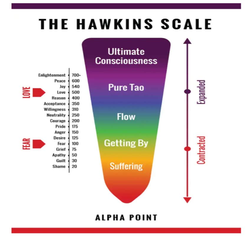 The emotions of joy and play are higher on the Hawkins vibratory scale, which establishes a de facto scale matching emotion with vibrational frequency.