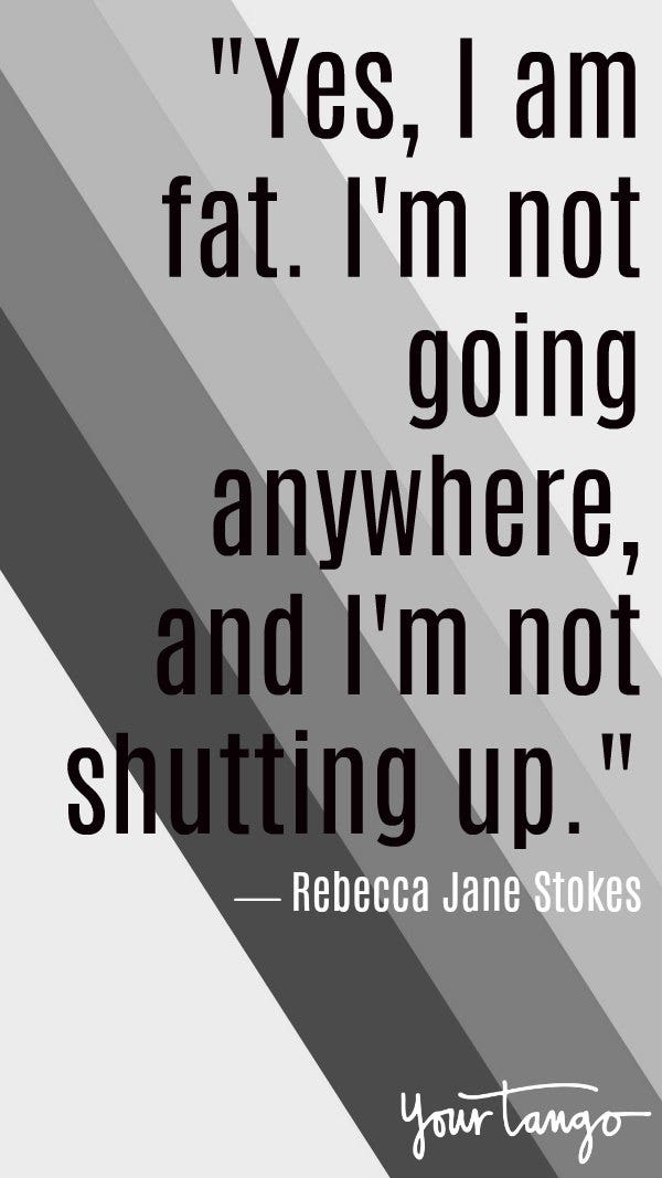 "Yes, I am fat. I'm not going anywhere, and I'm not shutting up."