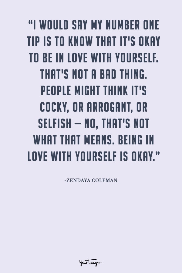 “I would say my number one tip is to know that it's okay to be in love with yourself. That's not a bad thing. People might think it's cocky, or arrogant, or selfish — no, that's not what that means. Being in love with yourself is okay."— Zendaya